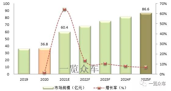 一覽眾咨詢數據顯示:2020年中國新能源汽車高壓連接器市場規模36.8億元。預計到2025年國內電動汽車高壓連接器市場規模將達到86.6億元。
