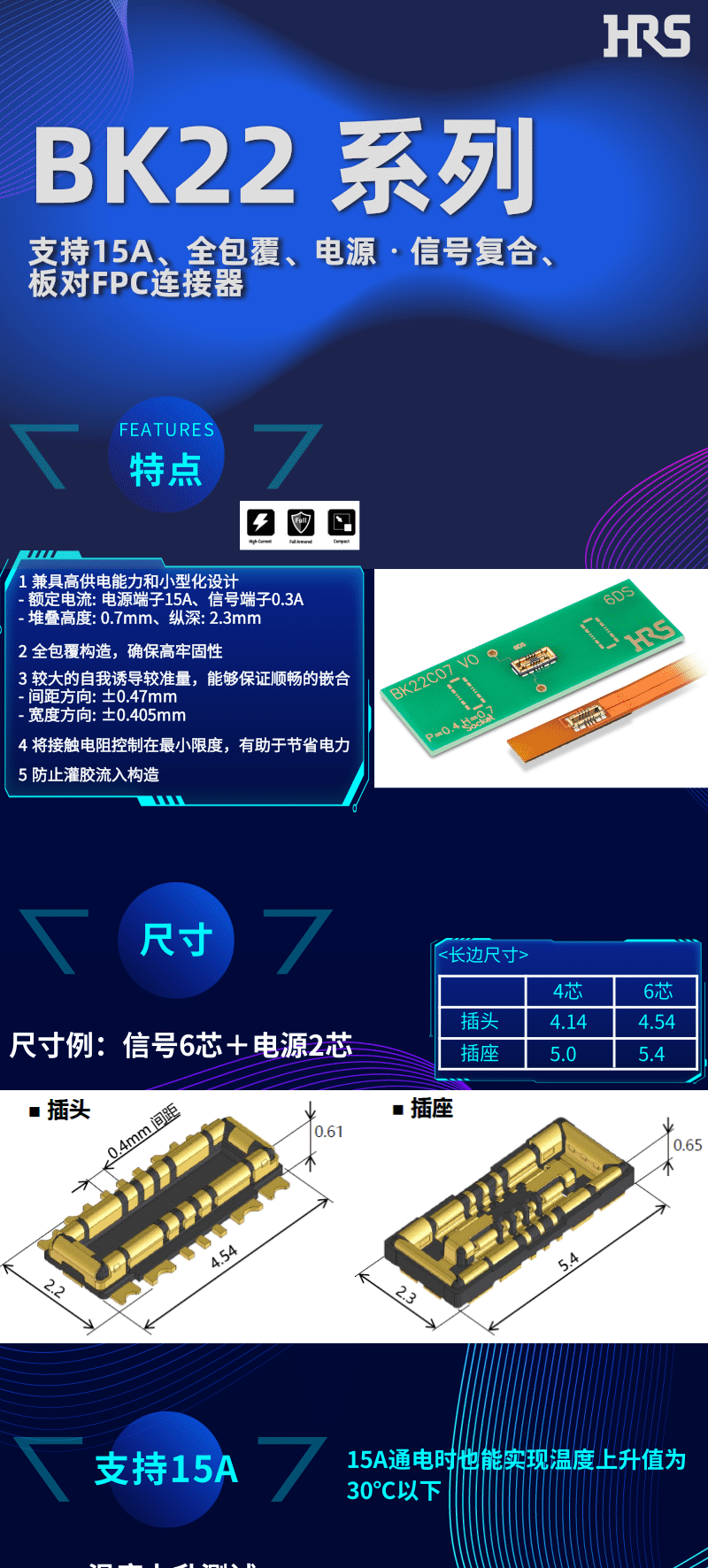 【產(chǎn)品推薦】具有高達(dá)15A供電能力全包覆、電源?信號復(fù)合、板對FPC連接器-BK22系列